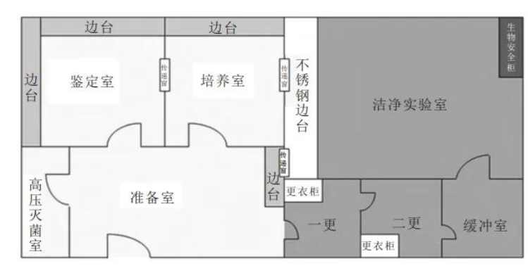 1.準備間:功能上應涵蓋培養基的稱量、制備和保存,天平間、制水間可包含在此區域中;根據功能和面積大小,可再對準備間進行合理劃分。