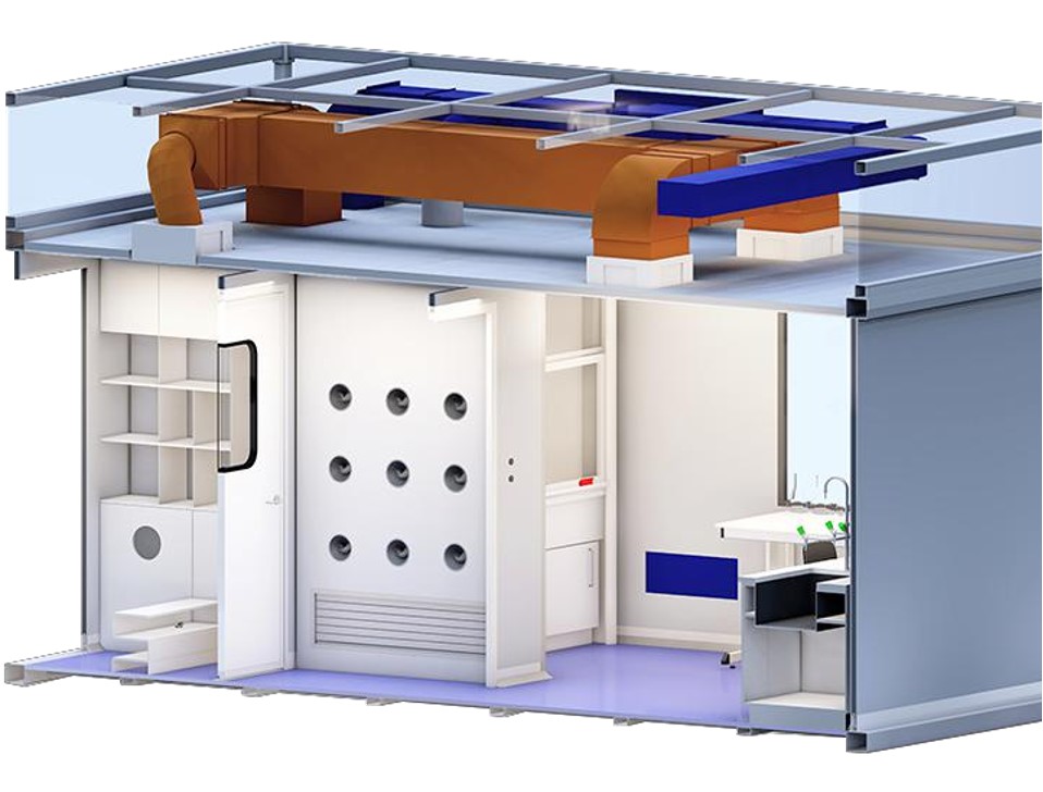 方舟系列實驗室除了將滿足室內溫度、濕度、潔凈度、無菌環(huán)境要求的模塊化組件 集成到每個模塊中,還可以將客戶的生產設備集成在模塊化單元內部,例如制藥設 備和工藝管道、工藝氣體和設備電源等,可以組裝并準備生產運行。